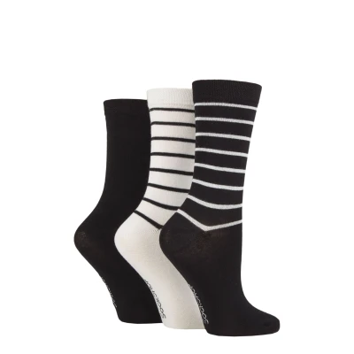 SockShop Ladies Plain Patterned and Striped Bamboo Socks Pack of 3 (Black Striped, 4 8)