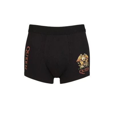 Fans of Queen will be delighted by these black SOCKSHOP Music Collection Queen Boxer Shorts, which bear the band’s full colour crest on the left leg, and name in red on the right, in a design officially licensed by the band. The colourful crest was originally designed by Freddie Mercury in 1973, and features all four members’ zodiac signs. These quality boxers are stretch jersey, woven using a 95% cotton rich blend for softness and breathability, with a little elastane added. They’re constructed with an elasticated waistband, double layer front pouch, seam-free rear and sides for a smooth fit, and have 5cm inseam legs. For extra comfort, these Queen boxer shorts are label-less, with care instructions printed inside.