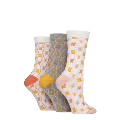 SockShop Wildfeet Ladies Textured Socks Knit Patterned Soft Cotton in a 3 Pair Multipack Size 4 8 Flowers