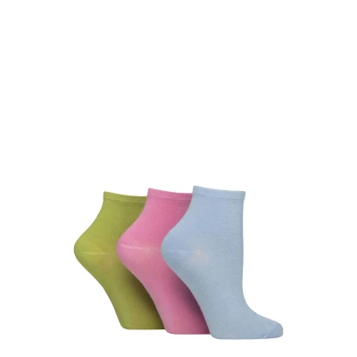 SockShop Women's Bamboo Ankle Socks Plain, Patterned, Striped, Floral, Colourful, Bright, Smooth Toe Seams 3 Pairs Size 4 8 (UK, Numeric, 4, 8, Regular, Plain Ocean View)