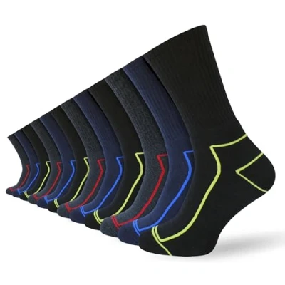 Durable Heavy Duty Design Built for tough jobs, these thick men’s work socks deliver long lasting strength and comfort. Ideal for builders, mechanics, engineers and anyone wearing steel toe boots all day. Cushioned Padded Sole for Comfort Each pair includes a soft padded sole that reduces pressure, absorbs impact and keeps feet supported during long hours on site or in the workshop. Moisture Wicking Sweat Control Made with breathable, moisture wicking fibres, these work socks help keep feet dry, reduce odour and minimise blister risk for all day freshness. Reinforced Heel and Toe High stress areas are strengthened for extra durability, helping your socks last longer even with heavy everyday use. Perfect for steel toe and safety boots. Great Fit and Multipack Value Available in UK sizes 7 to 12, these men’s boot socks offer a comfortable universal fit. The 12 pack provides excellent value, ensuring you always have a fresh pair ready for demanding workdays or gifting.