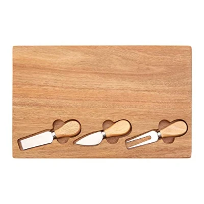 The cheese board is made from Acacia wood, and is naturally Antibacterial The knives are stored securely in bespoke docks, each one with a rubber wood handle that complements the acacia wood The knives allow both hard and soft cheeses to be cut with ease, with a cheese fork included for hygienic handling Care instructions: Wash with warm soapy water, rinse and towel dry Dimensions (H x W x D): 2 x 37 x 23 cm