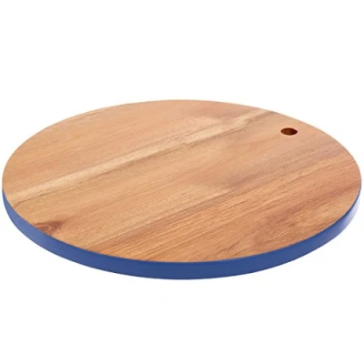 AmazonMade from Naturally Acacia wood Its thick sides are coloured blue, helping to accentuate the board's rich wooden tones Cut-out circle on its outer edge allows it to be hung away when not in use Care instructions: Wash with warm soapy water, rinse and towel dry Dimensions (H x W x D): 2 x 30 x 30 cm