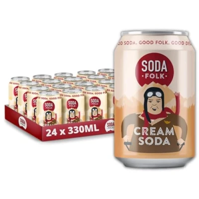 Soda Folk Cream Soda, American Style Fizzy Drinks, Real Maple Syrup, Sweet Refreshing Soft Drink, The Prime Nostalgic Flavours, Gluten Free & Vegan (24 x 330ml Cans)