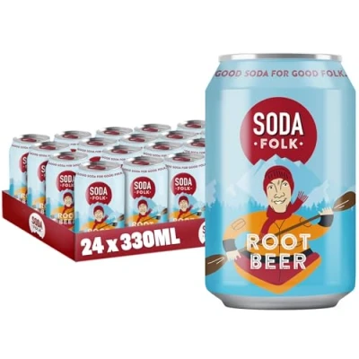 Soda Folk Root Beer, American Style Fizzy Drinks, Real Maple Syrup, Sweet Refreshing Reduced Sugar, Soft Drink, The Prime Nostalgic Flavours, Gluten Free & Vegan (24 x 330ml Cans)