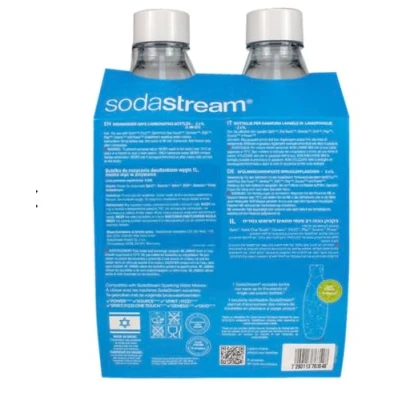 Handy Duo: 2 x 1 litre dishwasher safe reusable bottles, means less time & fuss trying to get the bottles clean & more time enjoying your favourite carbonated drinks. Perfect for the whole family Less Waste, More Sparkle - Fresh, sparkling water in seconds, without buying endless plastic. 1 reusable SodaStream carbonating bottle can save up to 1,282 plastic bottles from our planet over 4 years Home & Away - Weighing just 300g, these reusable carbonated drinks bottles are perfect to take out and about; Being lightweight and compact, carrying them is easy so you can always stay hydrated Taste Tested - BPA-free plastic and perfect for carbonating water, avoid consuming harmful chemicals found in plastic bottles; Equipped with a hermetic sealing cap to keep your drinks fizzy for longer Compatible: ONLY compatible with SodaStream Spirit, Spirit One Touch, Terra, Art, Power, and Source Sparkling Water Makers. Please check your machine model before purchase