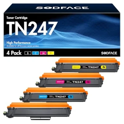 SODFACE TN247 TN-247 TN-243 Toner Cartridges Compatible for Brother TN-247 TN247 TN243 TN-243CMYK toner Pack (not original,4 pack) Compatible Printer: Brother DCP-L3550CDW HL-L3230CDW MFC-3750CDW HL-L3210CW MFC-L3710CW DCP-L3510CDW HL-L3270CDW MFC-L3710CW MFC-L3730CDN DCP-L3510CDW DCP-L3517CDW Toner Page Yield: 3000 pages per TN247 TN-247 TN243 BK toner, 2300 pages per TN247 TN243 TN-243CMYK colour toner for Brother DCP-L3550CDW toner (at 5% coverage) Package Contents: 1 Black TN247BK, 1 Cyan TN247C, 1 Yellow TN247Y, 1 Magenta TN247M for Brother DCP-L3550CDW toner SODFACE TN247 TN243 TN-247 TN-243CMYK toner cartridges are have a hight tested at each production stage to meet quality standards and ensure excellent print results