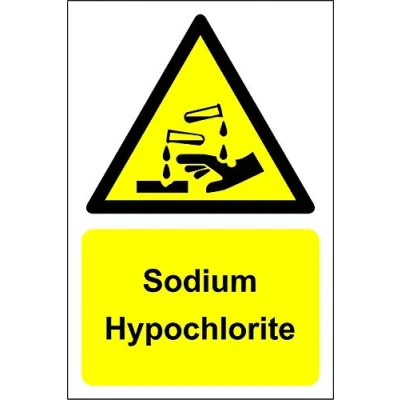 Sodium Hypochlorite sign Self adhesive sticker 200mm x 150mm Digitally printed and laminated for extra durability Remove backing film and apply to dry, smooth, oil free surface., Manufacturer: KPCM Display ltd