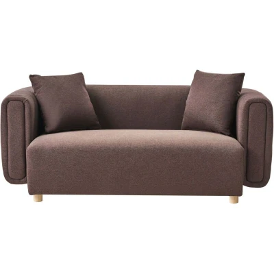 Retro Couch for 2 People. Designed with comfort in mind, this sofa brings a touch of sophistication to your home. Its rounded silhouette and soft fabric upholstery invite you to sit back and relax, while the neutral tone complements a wide range of décor styles. The additional cushions with removable covers add both convenience and charm. Details: Product Type: 2 Seater Sofa Style: Modern General Color: Brown Shade: Dark Brown Material Type: Fabric Main Material: Fabric Additional Material: Eucalyptus Wood Filling Material: Foam Material Composition: 100% Polyester Arm Style: Track Pattern: Solid Seat Construction: Sinuous Springs Seat Foam Density: 28 kg/m3 Seats Up To: 2 People Dimensions: Armrests Height: 67 cm Depth: 86 cm Seat Thickness: 37 cm Seat Height: 42 cm Width: 176 cm Height: 67 cm Seating Surface: 131x63 cm Weight: 47 kg Weight Capacity per Person: 175 kg Offer Includes: 1 x Sofa, Cushions Included Key Features: Retro Style, Creates a Cosy Atmosphere, Top-Notch Quality