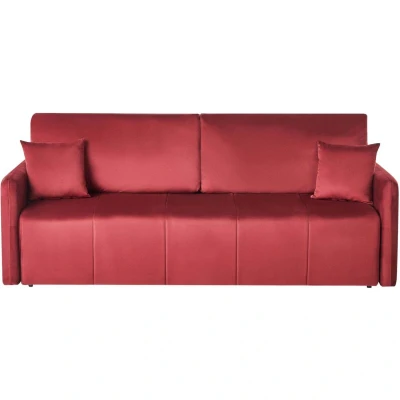 General description This stylish sofa bed with storage is the perfect addition to your living space, offering both comfort and practicality. Its chic design effortlessly fits into any room, while the handy sleeping function ensures a restful night’s sleep for guests. The luxurious velvet upholstery adds a touch of elegance, making it a statement piece in your home. Technical specifications Product Type: Sofa Bed Style: Glam General Color: Red Shade: Burgundy Main Material: Velvet Additional Material: Plywood Filling Material: Foam Material Composition: 100% Polyester Arm Style: Track Reclining: No Removable Cushion Covers: Yes Seat Construction: Pocket Springs Seat Foam Density: 30 kg/m3 Seats Up To: 3 People Sleeper Function: Yes Sofa Bed Open Mechanism: Pull-Out Storage: Yes Dimensions: Width: 220 cm, Height: 88 cm, Depth: 93 cm, Seat Height: 45 cm, Seat Thickness: 45 cm, Armrests Height: 61 cm, Seating Surface: 200x53 cm, Sleeping Surface: 200x136 cm Weight: 84 kg Weight Capacity