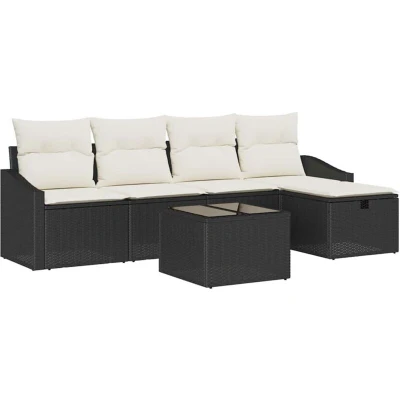 ManoManoGeneral description This Garden Sofa Set expertly combines modern design with functional versatility, making it a perfect addition to any garden or terrace. Its sleek rectangular form, enhanced by a woven texture, creates a stylish appeal that fits seamlessly into outdoor spaces. Designed for flexibility, it features modular components allowing you to rearrange and customize your seating experience. Whether hosting a gathering or enjoying a quiet afternoon, this set adapts to various seating arrangements, offering comfort and style for all. Technical specifications Colour: Black Material: Poly rattan Overall dimensions: 55 x 55 x 37 cm (L x W x H) Adjustable Feet Modular Durable With 4 pillows Indoor / outdoor: Outdoor only Number of items: 6 Assembly required: Yes EAN: 8721288407177 SKU: 3360598 Brand: vidaXL Compatibility and accessories Delivery contains: 2 x Centre seat including storage function with a water-resistant bag 2 x Arm sofa including storage function with a