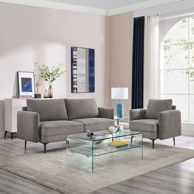 Transform your living space with the Sofia Sofa Set. Whether you're looking to make a statement in a small apartment or furnish a spacious living room, the Sofia offers the perfect solution. Crafted with high-quality fabric, this Sofa is not only visually appealing but also durable and comfortable. The soft texture invites you to relax and unwind. Its well-cushioned seats and supportive backrests ensure you and your guests can lounge in style. Adding a touch of industrial chic, the sturdy metal legs provide excellent support and stability. Available in 3 colours, Mocha, Charcoal and Beige.