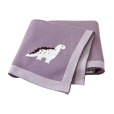 Soft Baby Knitted Blanket for Newborn, Surwin Cartoon Dinosaur 100% Cotton Warm Nursing Sleep Sack Stroller, Birthday Gift Kids Boys and Girls (100x80cm,Purple)