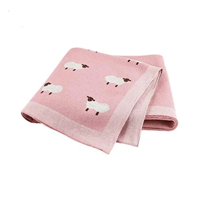 Soft Baby Knitted Blanket for Newborn, Surwin Little Sheep Pattern 100% Cotton Warm Nursing Sleep Sack Stroller, Birthday Gift Kids Boys and Girls (100x80cm,Pink)