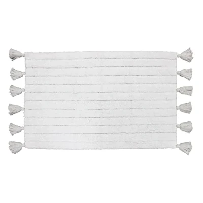 Minatis Bath Mat and Pom Poms 50 x 80 cm Cotton Jacquard White / White Composition 100% cotton - Jacquard cotton range Tassels 100% Cotton, Bathroom, Bath Mat + Tassels, Minatis Washable at 40 °C, tumble dry, do not iron