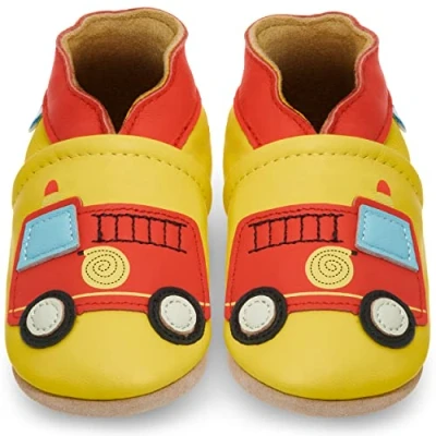 Soft Leather Baby Shoes with Suede Soles Toddler Infant Pre Walker Crib Firetruck 0 6 Months
