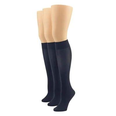 Nylon blend sock with banded top for stay-up comfort Knee high length Size 1: 4'11" to 6'0" and 100-200 lbs; Size 2: 5'2" to 6"0" and 175-300 lbs. 3 pair pack Made in USA