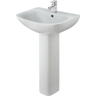 General description The Faron Soft Square 1 Tap Hole Bathroom Basin Sink & Full Pedestal is an essential addition to any modern bathroom. Manufactured from high-quality vitreous china with a crisp white finish, this basin combines elegant contemporary design with superior craftsmanship. The soft square design enhances the aesthetic of your bathroom, while the full pedestal provides a sleek and stylish look. Technical specifications Dimensions: W 545mm x H 840mm x D 455mm Weight: 21.6 kg Material: Vitreous china Tap hole: 1 predrilled tap hole Compatibility and accessories Suitable for use with a mono basin mixer tap (not included) Matching toilet available in the Faron range for a consistent bathroom design Other information Manufacturer's guarantee: 5 years