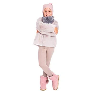 FLEECE LINED LEGGINGS MADE OF COTTON TO PRIORITIZE YOUR CHILDREN'S COMFORT: We understand that as a caring parent, your children's comfort is paramount. Our warm leggings for girls are thoughtfully designed with a blend of 95% cotton and 5% elastane, ensuring your little one experiences the utmost comfort with every wear. The soft and stretchy cotton blend in our kids leggings feels gentle against their skin, preventing any discomfort that can distract from their activities. WARM THERMAL LEGGINGS FOR YEAR-ROUND PEACE OF MIND: When it comes to your child's well-being, these warm cotton leggings with thin fleece offer a perfect solution. The not-too-thick fleece lining strikes a balance between warmth and breathability. This means you can have peace of mind knowing your child is snug and cozy during colder seasons, yet not overheating during active playtime with our trousers for girls. PERFECT AS WARM SCHOOL TROUSERS AND LINED LEGGINGS FOR PLAYGROUND: As a parent, you want your child to be adequately covered and protected. These girls leggings feature an ankle-length design, ensuring your child's legs stay warm and shielded from the elements. Whether they're in a chilly classroom, on their way to school, or enjoying outdoor adventures, these kids fleece lined trousers provide the coverage and comfort they need. EFFORTLESS DRESSING: We provide fleece lined pants that ensures convenience that matters to you. That's why we've equipped these girls fleece lined thermal leggings with an elastic waistband. It not only ensures a secure fit but also makes dressing a breeze. Your child can easily put the warm trousers on and take them off, fostering their independence. VERSATILE AND COMFORT-DRIVEN FOR EVERY DAY: Investing in these high-quality cotton leggings not only showcases your dedication to your child's well-being but also ensures they stay comfortable, cozy, and ready for any activity, be it a day at school, hours of play on the playground, or family walks outdoors. These leggings are the ultimate game-changer for parents who value versatility and their child's comfort above all else. Children's leggings are available in a range of sizes and colours.