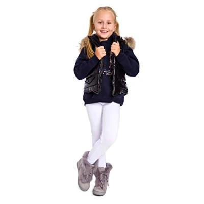 SOFTSAIL Fleece Lined Leggings Girls Children Cotton Kids Warm School Trousers Tights Thermal Pants for Girl, White 9 Years
