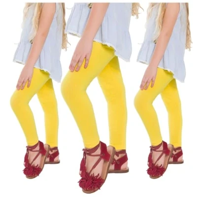 SOFTSAIL Girls Full Lenght Cotton Leggings for Kids I Children Plain School Dance Play Casual Wear Stretchy Elastic Solid Soft Pants Kids, Set of 3 2 13 Years