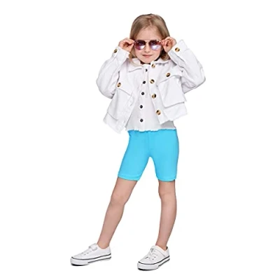 SOFTSAIL Girls Leggings Cycling Shorts Short Cotton Sport Dancing Gymnastic Breathable Comfy Stretchable Turquoise 6 7 Years