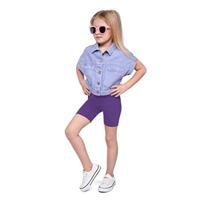SOFTSAIL Girls Leggings Cycling Shorts Short Cotton Sport Dancing Gymnastic Breathable Comfy Stretchable Violet 7 8 Years