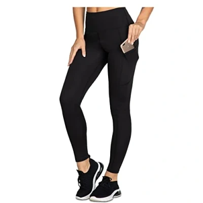 SOFTSAIL High Waisted Gym Leggings with Pocket I Tummy Control Sport Womens Shaping Slimming Sports Push Up Workout Yoga Wide Waistaband Running Pants Size S 3XL Black