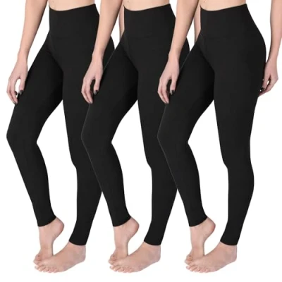SOFTSAIL Leggings for Women 3 Pack Set High Waist Tummy Control Slimming Opaque Buttery Soft Breathable Elastic Ladies Stretching Gym Workout Yoga Pants Black 16 XXL
