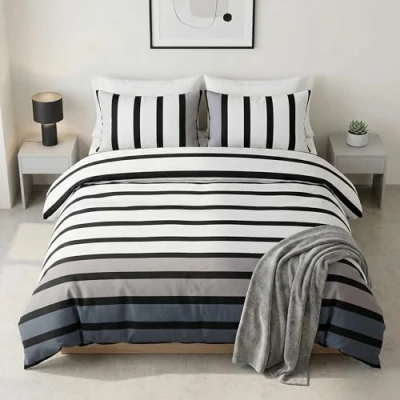 Soho Black Stripe Duvet Cover Quilt Bedding Set, 3pieces, White Grey, Double Size by Rapport