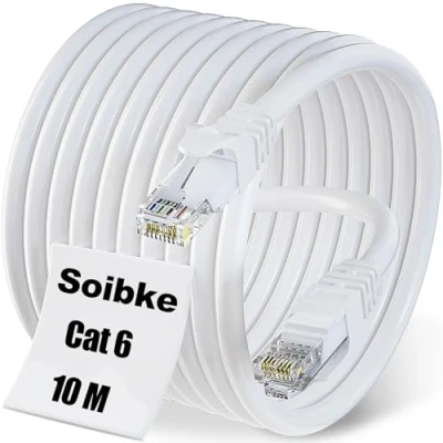 ✅ [Cat 6 Ethernet Cable 10m] Color: White, UTP (Unshielded Twisted Pair), CAT 6 UTP 4PR/23AWG VERIFIED TO EIA 568B:2 ISO/IEC 11801 EN501. For devices with RJ45 ports: Router, Modem, Switch, Smart TV, PC, Laptop, Wifi Repeater, Video Game Console (Xbox 360, Xbox One), Computer, Internet LAN. ✅ [Cat 6 Lan Cable] The outer sheath of the Cat 6 Ethernet cable is made of high-quality PVC material, which has a long service life. The cross diameter of the cable is 6mm and is packed in circular discs with flexible length, making it easy to carry and handle. ✅ [Cat 6 UTP Internet Cable] UTP (Unshielded Twisted Pair) cable is widely used for its noise reduction performance. The transmission distance of UTP cable is greater than that of shielded cable. No need to connect to ground wire. 4 pairs of unshielded twisted pair cables, each with PE insulation to minimise the effect of signal noise, reduce signal interference and improve transmission quality. ✅ [Cost Effective Network Cable] Although Cat 7 and Cat 8 cables sell well in the market, Cat 6 cables are still the most popular choice in the world. Because of its transmission rate of 250MHz and 1000Mbit/s, it can meet the network requirements of most users. At the same time, it is very economical, making Cat 6 UTP cable have the best price performance. ✅ [Safety & Quality Assurance] Soibke Cat 6 Ethernet cable is RoHS verified, allowing you to enjoy your life with a good quality assurance. If the Cat 6 Ethernet cable you received does not work properly, please contact me through Amazon at the first time, Soibke will provide you with after-sales service.
