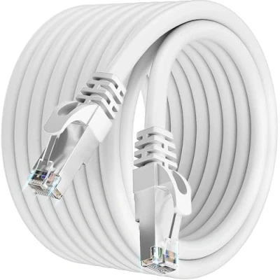 Soibke Ethernet Cable 18m, White Cat 7 Internet High Speed Network Cabe 600MHz 10Gbps Shielded Wifi Cabls 24AWG Patch RJ45 LAN Cabes Outdoor Wlan for PS5/4 Router Modem