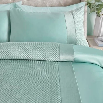 SOIREE Duck Egg Quilted Velvet & Satin Blend Duvet Cover Super King Bedding Size (260 x 220cm) 2x Pillowcases Luxury Pinsonic/Ultrasonic Patterned