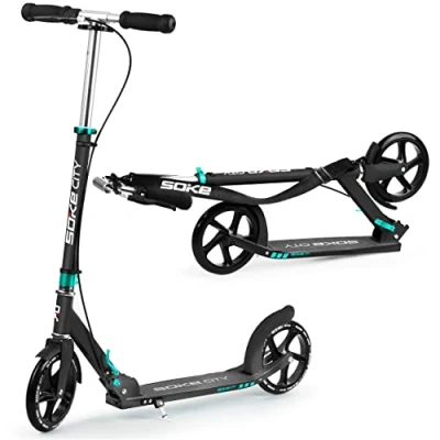 SOKE City Urban Recreational Scooter Foldable Adjustable Handlebar ABEC 9 Carbon Bearings Made of Chrome Plated Steel PU Wheels 88A Aluminium Deck Turquoise
