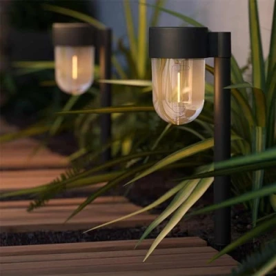 Elevate Your Outdoors: The Hamptons Solar Garden Lights effortlessly enhance your outdoor ambiance with a sleek black finish and captivating filament-style bulbs. Easy Installation: Designed for simplicity, these lights provide a hassle-free way to brighten up your garden, whether it's garden edging, flower beds, or entryways. Versatile Placement: Enjoy flexible placement options to illuminate every corner of your outdoor space, thanks to integrated solar panels and convenient stake mounts. Wireless, solar powered and fully automatic: The Hamptons will light automatically at dusk and turns off automatically after 8 hours. Simple quick and safe to install with everything you need in the box - LEDs last for 10 years or more. Full SolarCentre guarantee.
