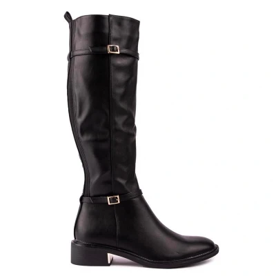 This Fine Knee-high Chloe Riding Boot From Solesister Combines Classic Equestrian Style With The Latest Trends. Crafted From Supple, Leather-look Upper, With A Stretchy Back Detail For An Ideal Fit, These Confident, Stylish Designer Boots Feature A Sleek Sole With A Savvy Metal Heel Trim And Elegant Straps With Golden, Delicate Buckles, Adding A Sophisticated Touch To This Riding Style.