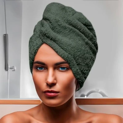 Bath towel for the head in cotton 24x62cm LAGOON khaki Cotton, Sponge