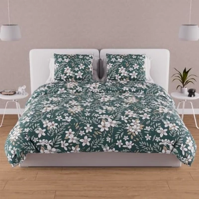 Manon Duvet Cover Set, 57 Thread Count, 240 x 220 cm, Green Cotton 57 threads/cm² Print High quality