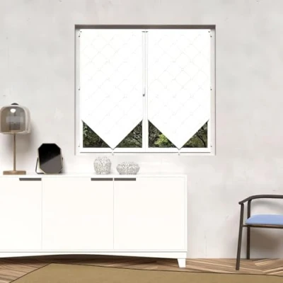 Soleil d'ocre, Pauline Pair of Half Curtain Polyester, White, 45 x 90 cm