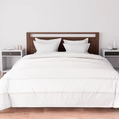This white microfibre duvet is extremely soft, suitable for all seasons Colour: white. Composition: - Cover: 100% polyester microfibre - Filling: 100% polyester. Density: 350 g/m², temperate. Dimensions: 240 x 260 cm. Care: machine washable at 40 °C Learn more: This product is certified according to OEKO-TEX Standard 100 - This certification aims to guarantee the non-toxic nature of textiles and dyes