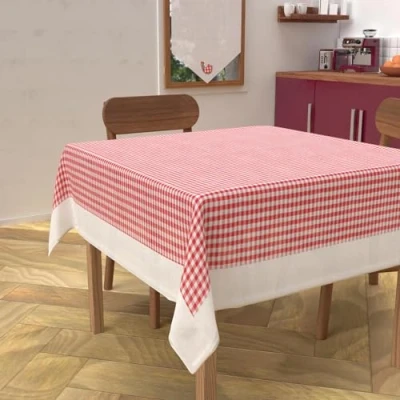 Soleil d'ocre, Stain Resistant Rectangular Cotton Tablecloth 140 x 240 cm Gingham Red