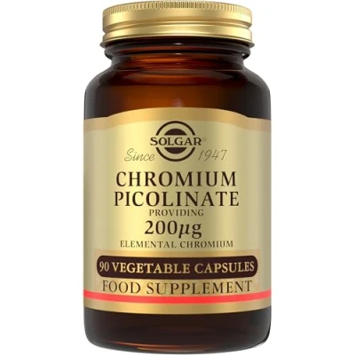 Solgar Chromium Picolinate 200 µg Vegetable Capsules Pack of 90 High Absorption Rate Supports a Healthy Metabolism and Blood Glucose Level Vegan Gluten Free Gold