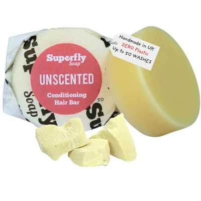 Solid Hair Conditioner Bar by Superfly Soap. Fragrance Free and Naturally derived ingredients. Handmade, Vegan friendly & Plastic free.