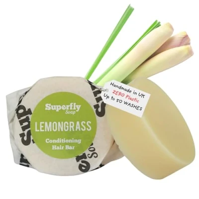 Solid Hair Conditioner Bar with Lemongrass, Handmade and vegan friendly. Naturally derived ingredients. For oily normal hair. By Superfly Soap.
