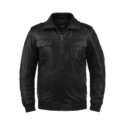 Solid Sdfamash Leather jacket, Men's, Size: Small, Black