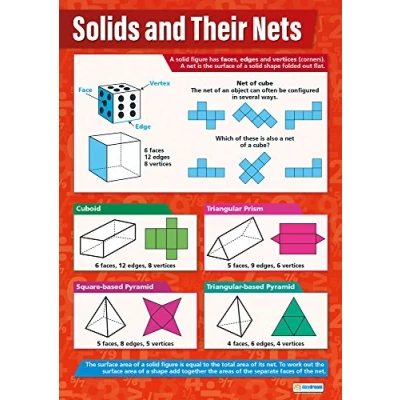 Solids and Their Nets Maths Charts Gloss Paper measuring 594 mm x 850 (A1) Math for the Classroom Education Posters by Daydream