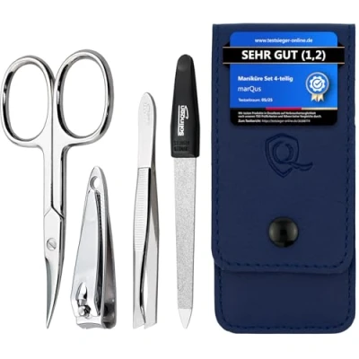 Solingen Manicure Set for Women and Men 4 Piece Nail Kit, comprising sharp scissors, tweezers, nailclippers, sapphire nailfile Ideal travelling, blue