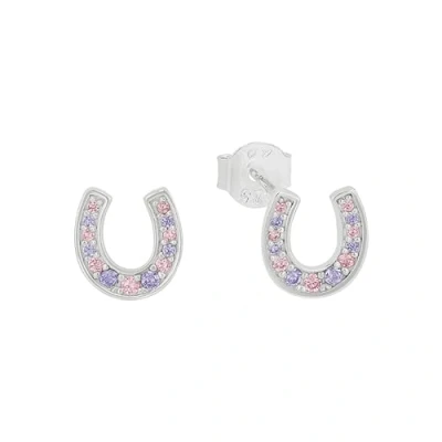 s.Oliver stud earrings 925 Sterling silver girls' children's earrings, with zirconia synth., 0.8 cm, silver, horseshoe, comes in jewelry gift box