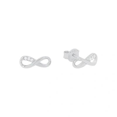 Charming ear studs with infinity motif in 925 sterling silver Made of shiny 925 sterling silver and decorated with sparkling cubic zirconia in pure white A high-quality coating of rhodium protects this piece of jewellery from tarnishing and thus promises to remain shiny and beautiful for a long time.