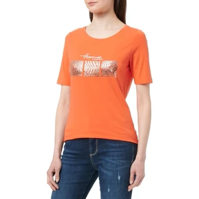 s.Oliver Women's 2144441 T Shirt with Front Print, Orange 25d3, 10
